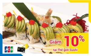 THẾ GIỚI SUSHI Giảm 10% trên tổng hóa đơn thanh toán Loại thẻ áp dụng: JCB Thời [...]